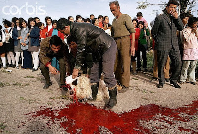 A lamb, the main meat dish in Cyprus, is slaughtered on the streets of the capitol, Nicosia.